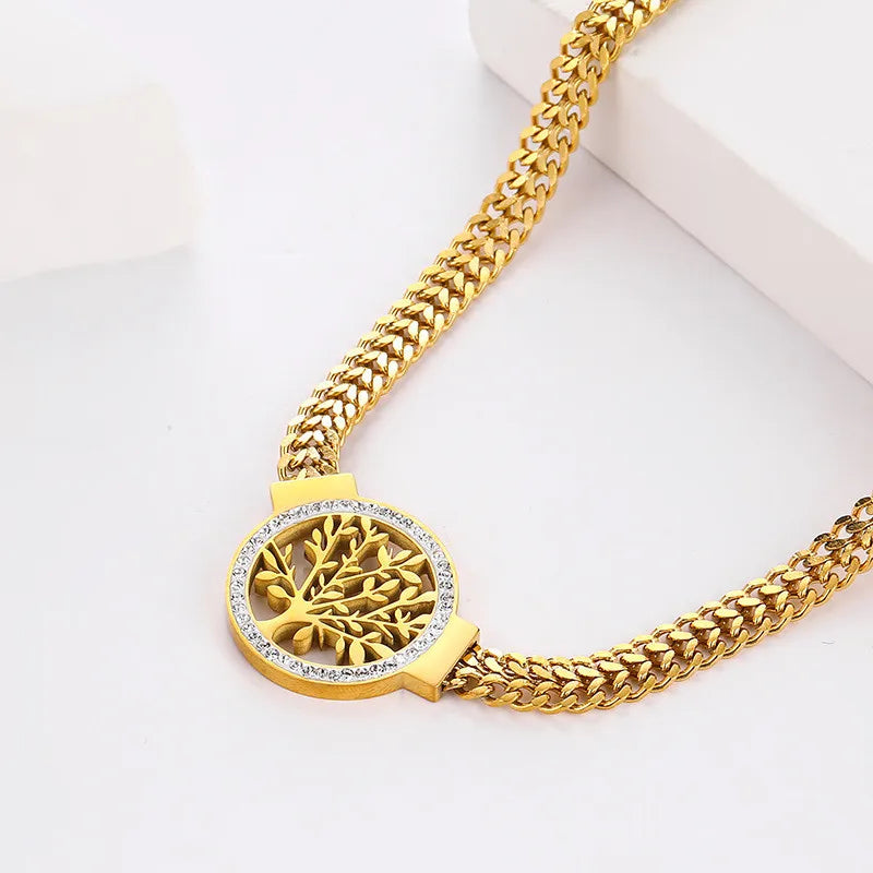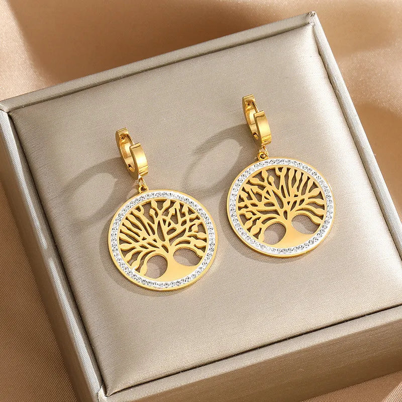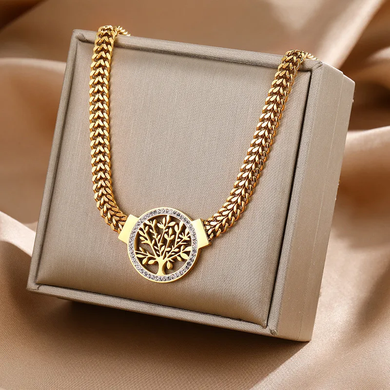 Tree of Life Luxury 316L Stainless Steel Set | Bold Thick Chain Necklace & Sparkling Zircon Earrings